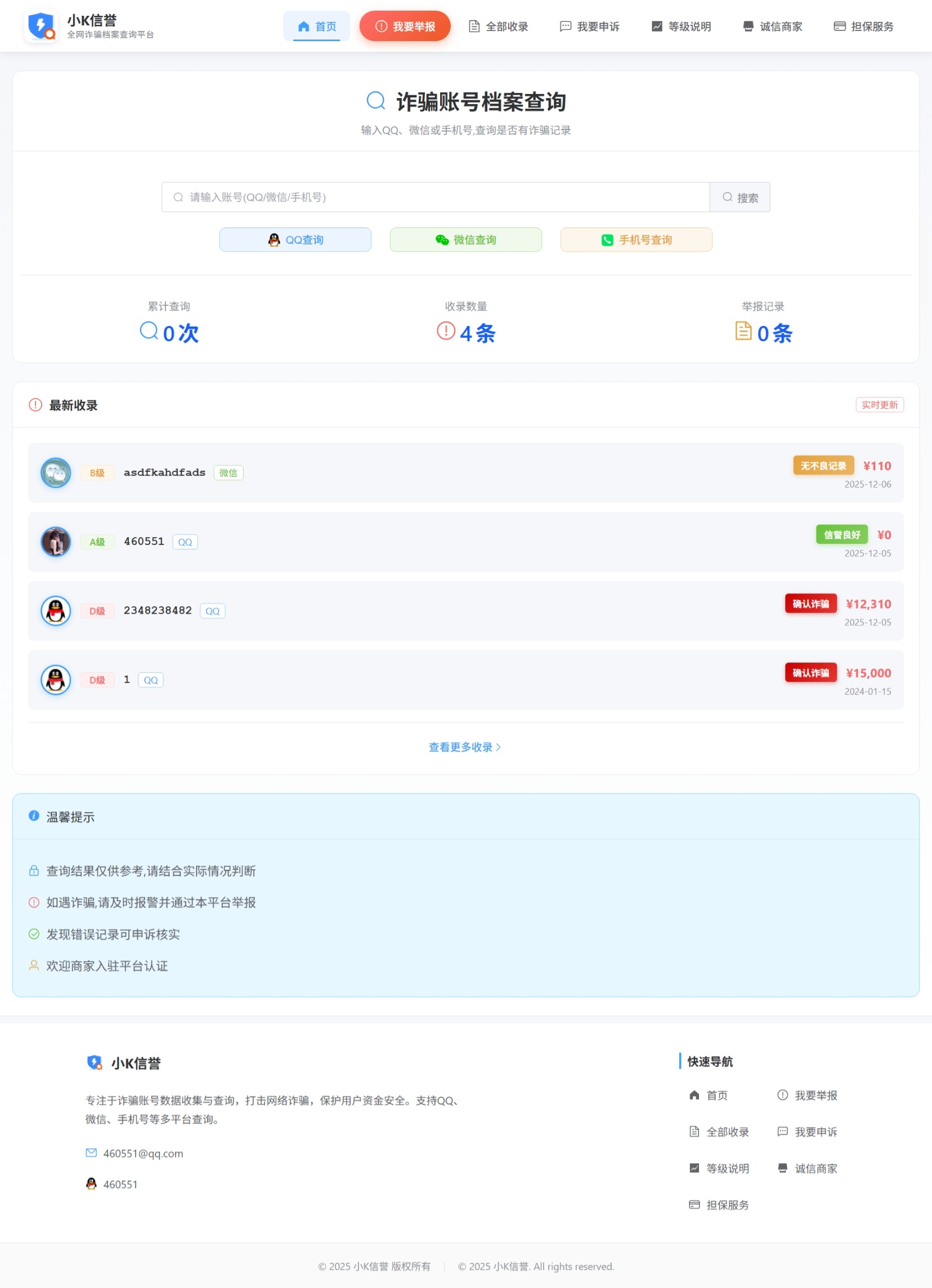 3.0全开源新独立开发反诈查询系统源码 其它源码 25年12月6日 编辑 前往下载 云服务器使者 取消关注 关注 私信 源码系统由小K团队开发,全新页面全新反诈系统完美运行,经过反复测试修改才发布出来,源码后期可能也会更新,到时候购买了的免费来更新就行了! 2025/11/19修复功能前台商家不能上传提交功能-已修复 2025/12/05美化了手机端、PC端,修复了已知BUG 老用户直接重新下载覆盖下就行 下载权限查看 ¥ 免费下载 评论并刷新后下载 登录后下载 查看演示 {{attr.name}}: 您当前的等级为 登录后免费下载登录 小黑屋反思中,不准下载! 评论后刷新页面下载评论 支付¥以后下载 请先登录 您今天的下载次数(次)用完了,请明天再来 支付积分以后下载立即支付 支付以后下载立即支付 您当前的用户组不允许下载升级会员 您已获得下载权限 您可以每天下载资源次,今日剩余次 【版权声明】:服务器导航网所有内容均来自网络和部分原创,若无意侵犯到您的权利,请及时与联系 QQ 2232175042,将在48小时内删除相关内容!! 给TA服务器 共{{data.count}}人 人已服务器