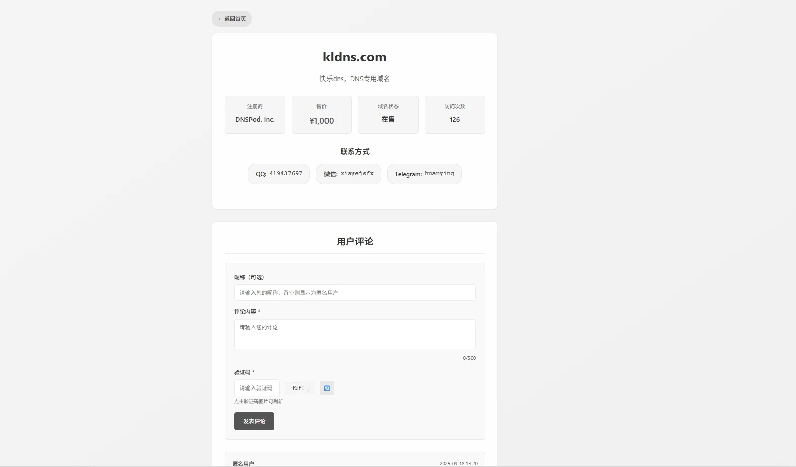 一个现代化、简约的域名展示和交易系统,支持多模板、评论系统和深浅色主题切换。