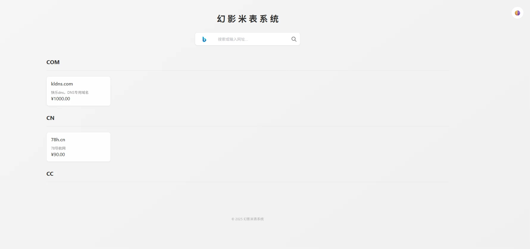 – Default 模板:现代渐变设计,适合高端域名展示